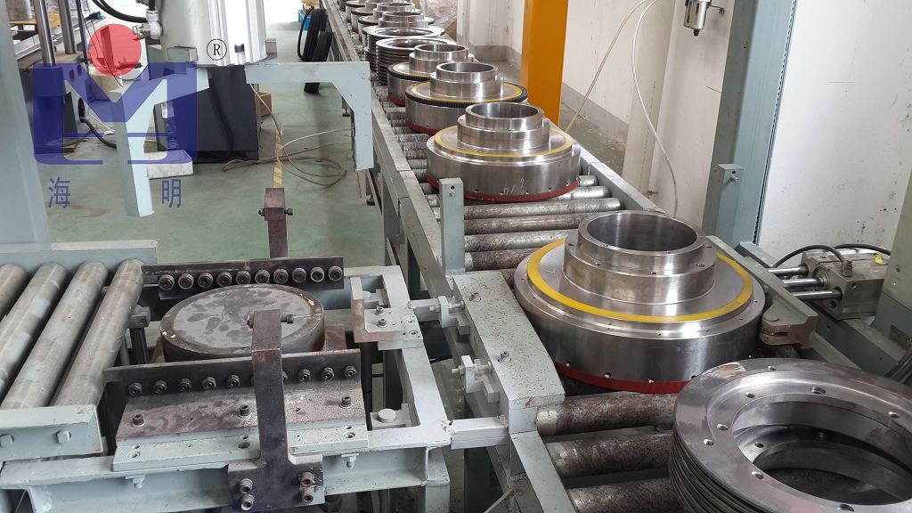 下圖就是我廠為某電梯部件供應(yīng)商量身定制的曳引輪加熱器,該加熱器是軸承加熱器的延伸產(chǎn)品,使用感應(yīng)加熱原理,通過微電腦程序控制加熱時(shí)間,加熱溫度,以及加熱的速率,解決了傳統(tǒng)的壓力機(jī)安裝曳引輪造成的一系列使得曳引輪損壞的問題,并且大大提高了工作效率,節(jié)約了生產(chǎn)成本,同時(shí)降低了工人的勞動(dòng)強(qiáng)度實(shí)現(xiàn)全部自動(dòng)化操作。
